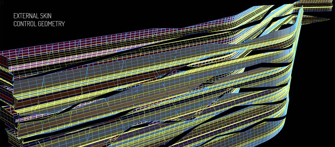 - completely rebuilding the 3D model of the ‘Orange’ facades, consisting of 8009 standard panels and 5960 folded panels, to use it as control geometry within a BIM model;